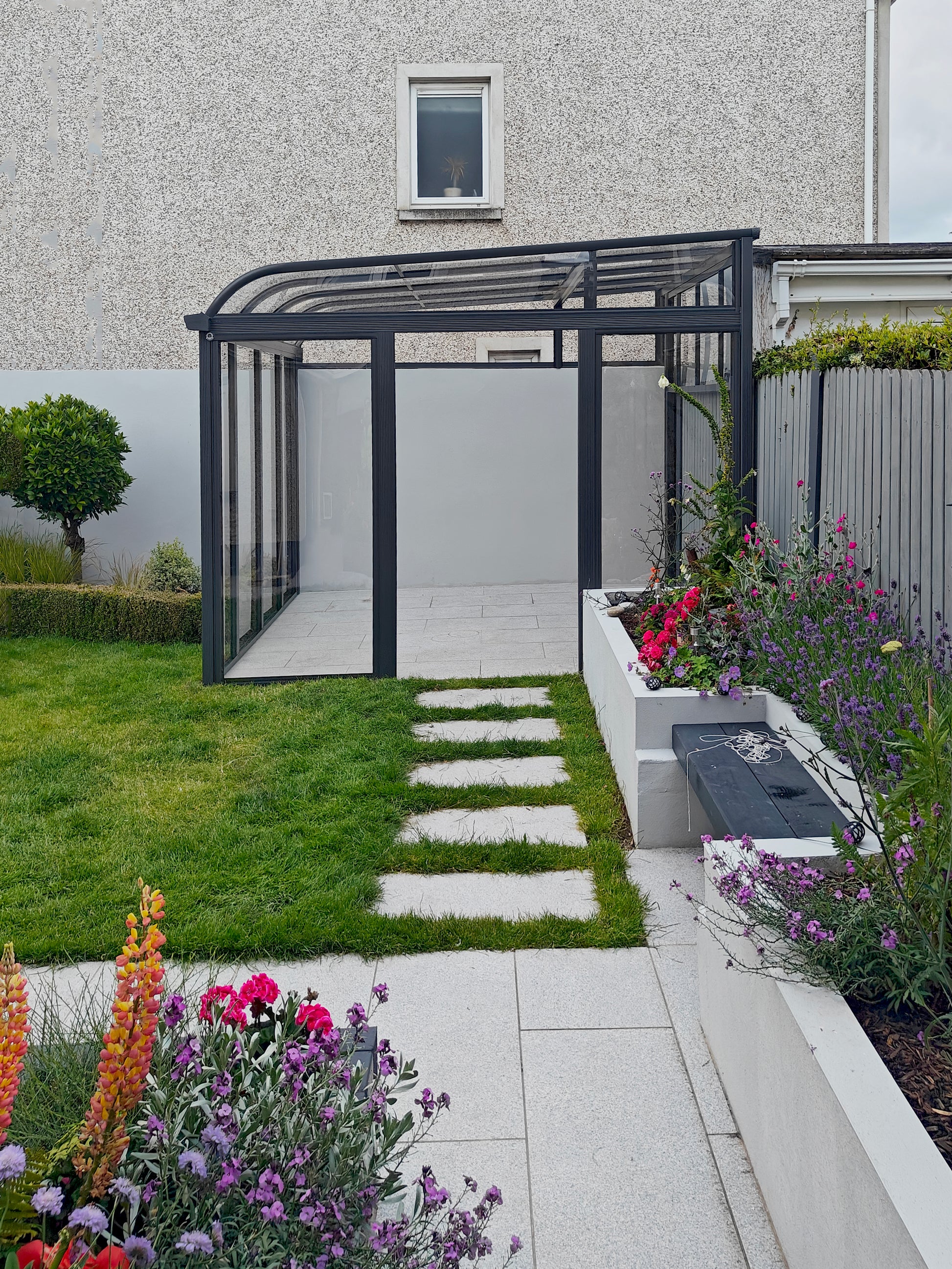 Choose from one of our 3 colours of composite decking, grey, brown, or red to finish off your outdoor space. -